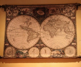 There is a Hidden Mickey in this pic taken at the Bonjour Village Gifts Shop in Fantasyland at The Magic Kingdom. If you look at this map and fold it...