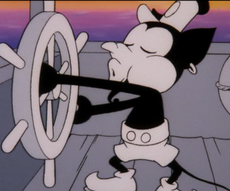 VIEW HIDDEN MICKEYThere is a Hidden Steamboat Willie in this scene with the Genie in Aladdin and the King of Thieves after the wandering island sinks.