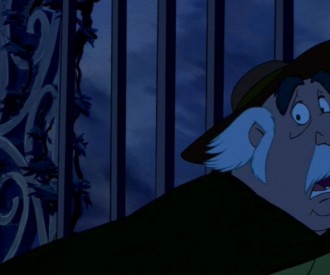 There is a Hidden Mickey in this scene where Poppa arrives at the gates of the Enchanted Castle.  We believe this is a Hidden Mickey because the...