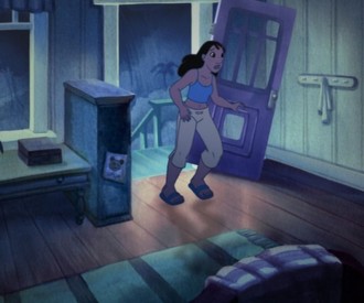 VIEW HIDDEN MICKEYThere is a Hidden Mickey in this scene Stitch The Movie when Lilo's sister runs into the house to check on Lilo.
