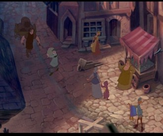 VIEW HIDDEN MICKEYThere is a Hidden Aladdin Carpet in this scene from The Hunchback of Notre Dame located toward the beginning of the movie..