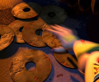 VIEW HIDDEN MICKEYThere is a Hidden Mickey in this scene of Toy Story 2 when Buzz Lightyear is fighting Emperor Zurg to try to rescue Woody from Al's apartment.