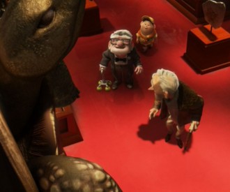 VIEW HIDDEN MICKEYThere is a Hidden Mickey in this scene of Up when Carl Fredricksen and Russel are in the Spirit of Adventure blimp.