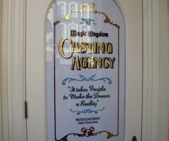 VIEW HIDDEN MICKEYThere are Hidden Mickeys on the door for the Magic Kingdom Casting Agency located on Main Street in The Magic Kingdom.