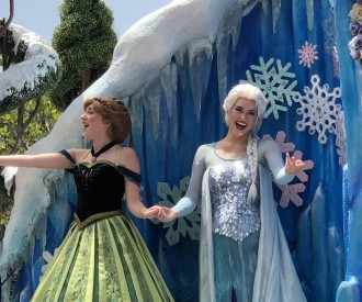 VIEW HIDDEN MICKEYDuring the character parade where Elsa, Anna and Olaf are on a float, you can see a small Hidden Mickey in the center...