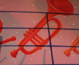 VIEW HIDDEN MICKEYThere is a Hidden Mickey in this pic taken at the entrance waiting area of Mickey's PhilharMagic in the Magic Kingdom.